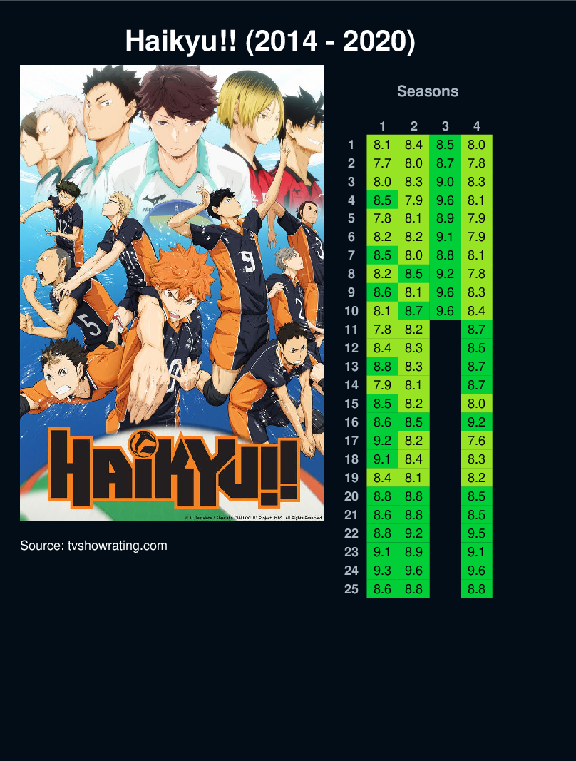 | 2 | 7.7 | 8.0 | 8.7 | 7.8 | |||||||||||||||||||||||||||||||||||||||||||||