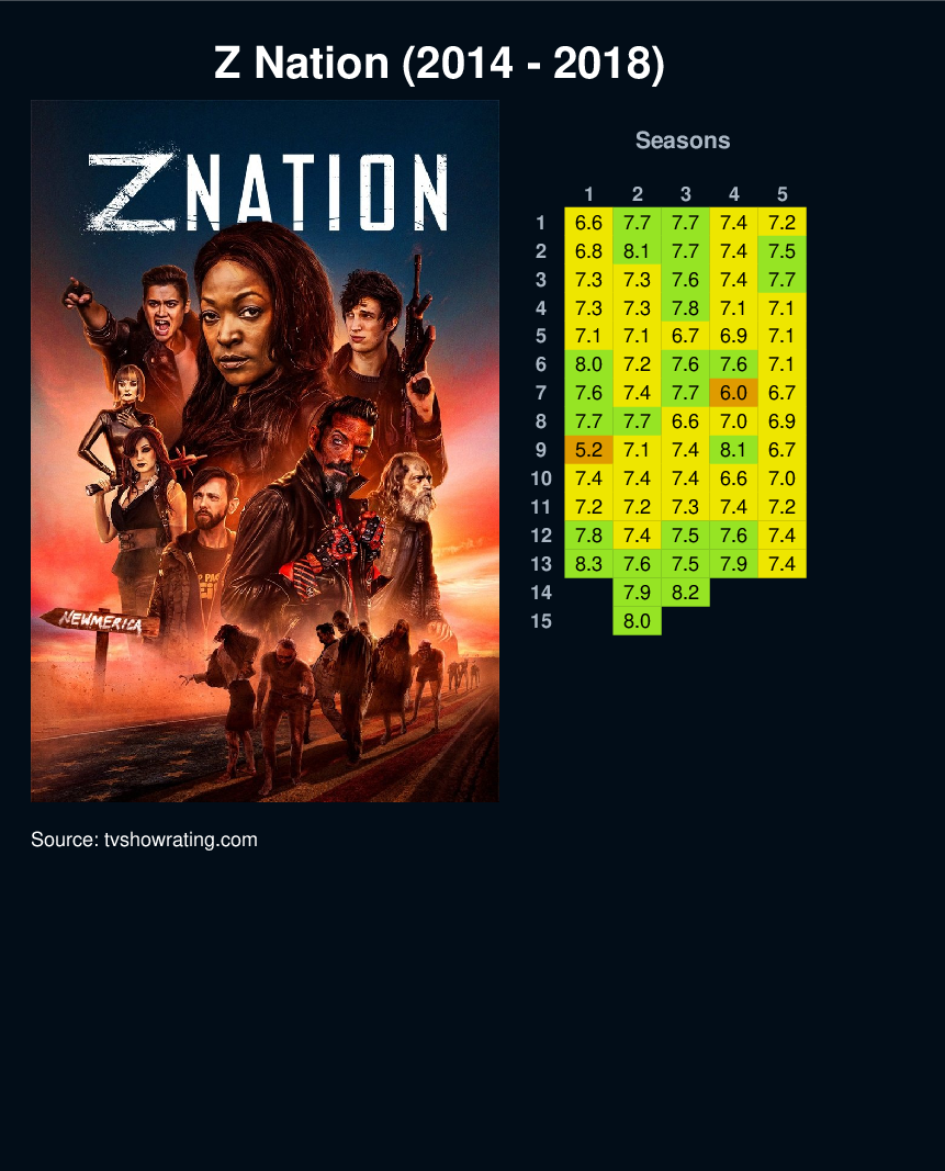 | 2 | 6.8 | 8.1 | 7.7 | 7.4 | 7.5 | ||||||||||||||||||||||||||||||||||||||||||||
