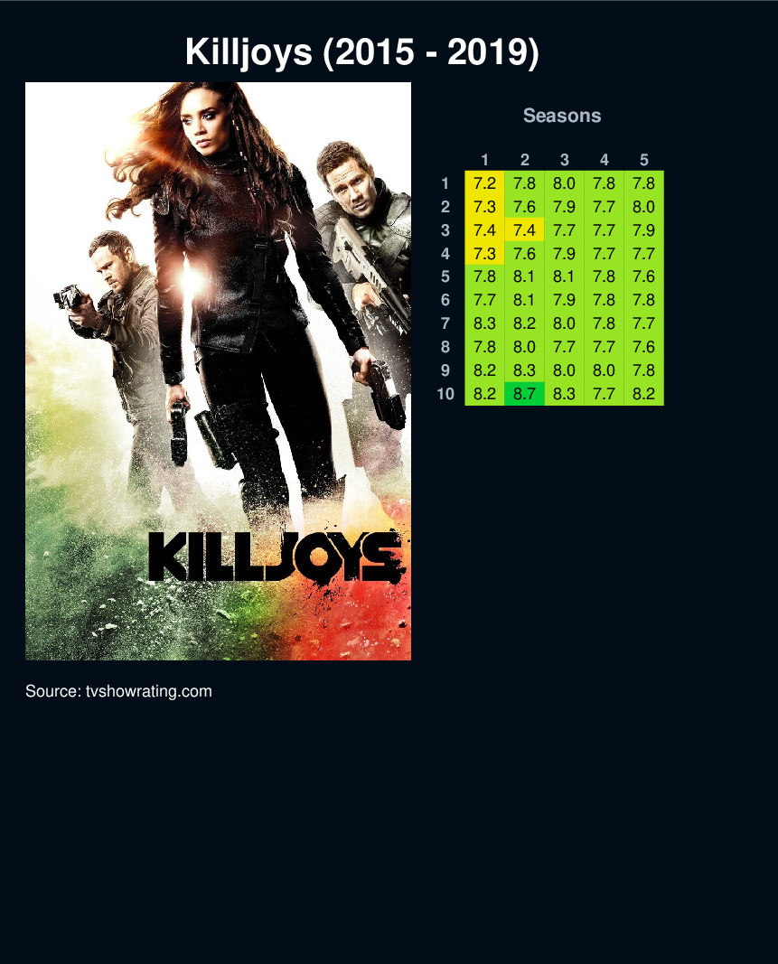 An action-packed adventure series following a fun-loving, hard living trio of interplanetary bounty hunters (a.k.a. Killjoys) sworn to remain impartial as they chase deadly warrants around the Quad, a system of planets on the brink of revolution.