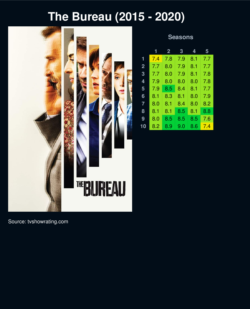 | 5 | 7.9 | 8.5 | 8.4 | 8.1 | 7.7 | ||||||||||||||||||||||||||||||||||||||||||||