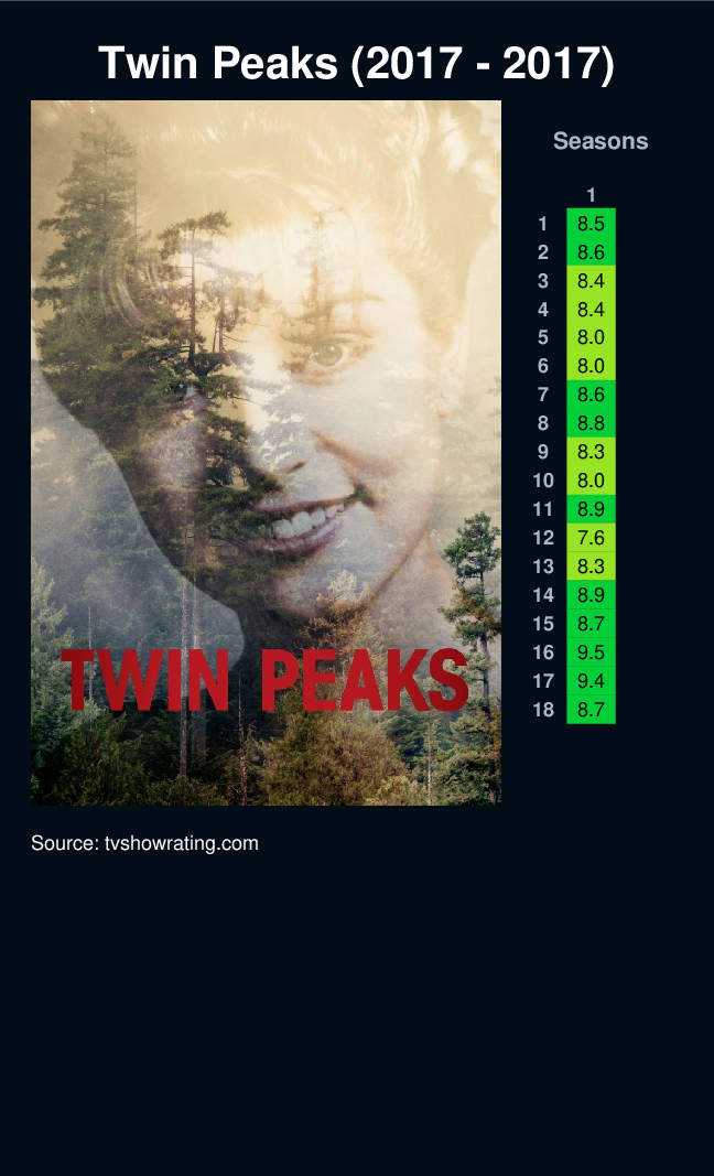 The body of Laura Palmer is washed up on a beach near the small Washington state town of Twin Peaks. FBI Special Agent Dale Cooper is called in to investigate her strange demise only to uncover a web of mystery that ultimately leads him deep into the heart of the surrounding woodland and his very own soul.
