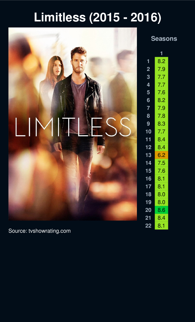 Brian Finch's life takes an extraordinary turn when he uses NZT-48, a neuroenhancing drug whose mystery and chaos lead him to working for the FBI and a senator who is not what he seems.