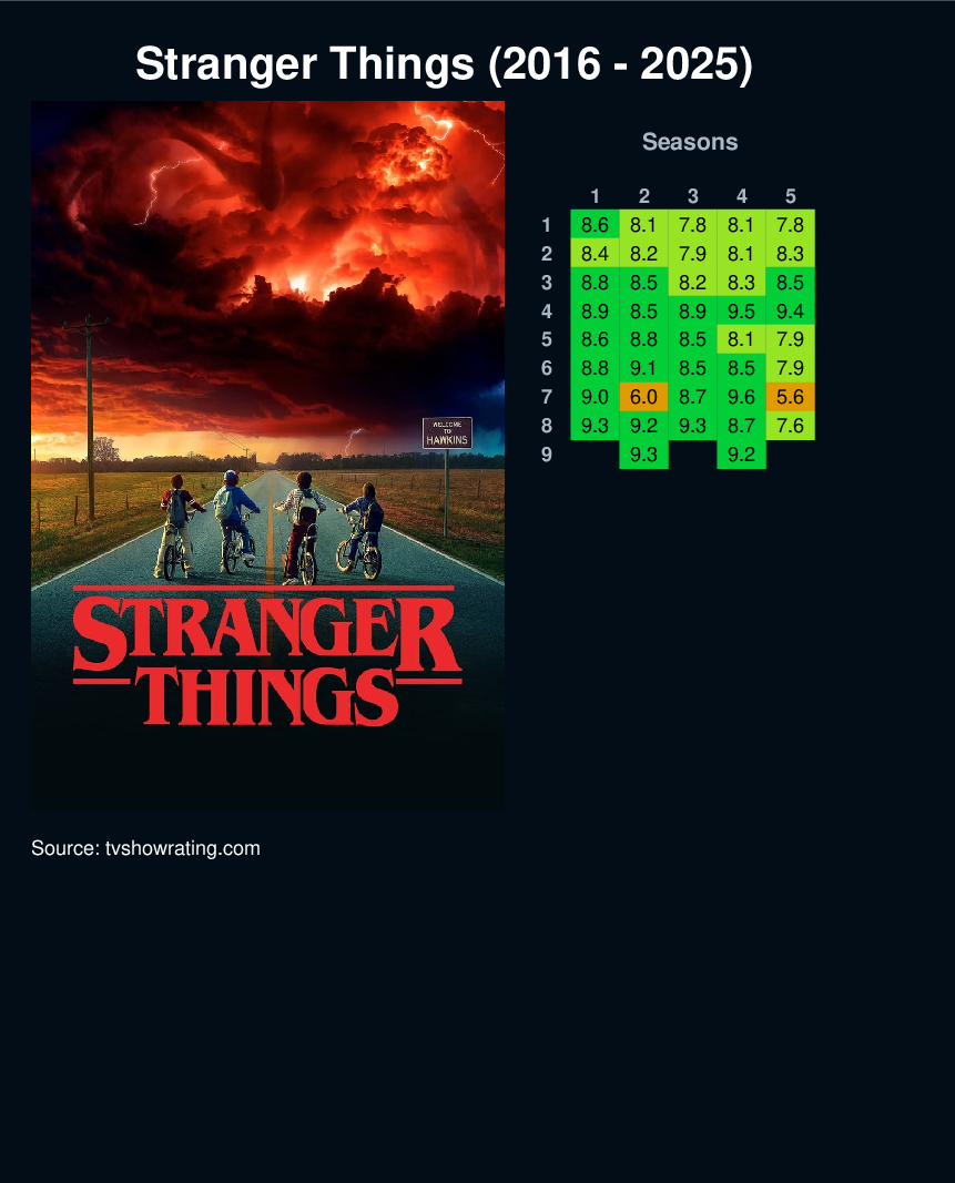 | 5 | 8.6 | 8.8 | 8.5 | 8.1 | 7.9 | ||||||||||||||||||||||||||||||||||||||||||||