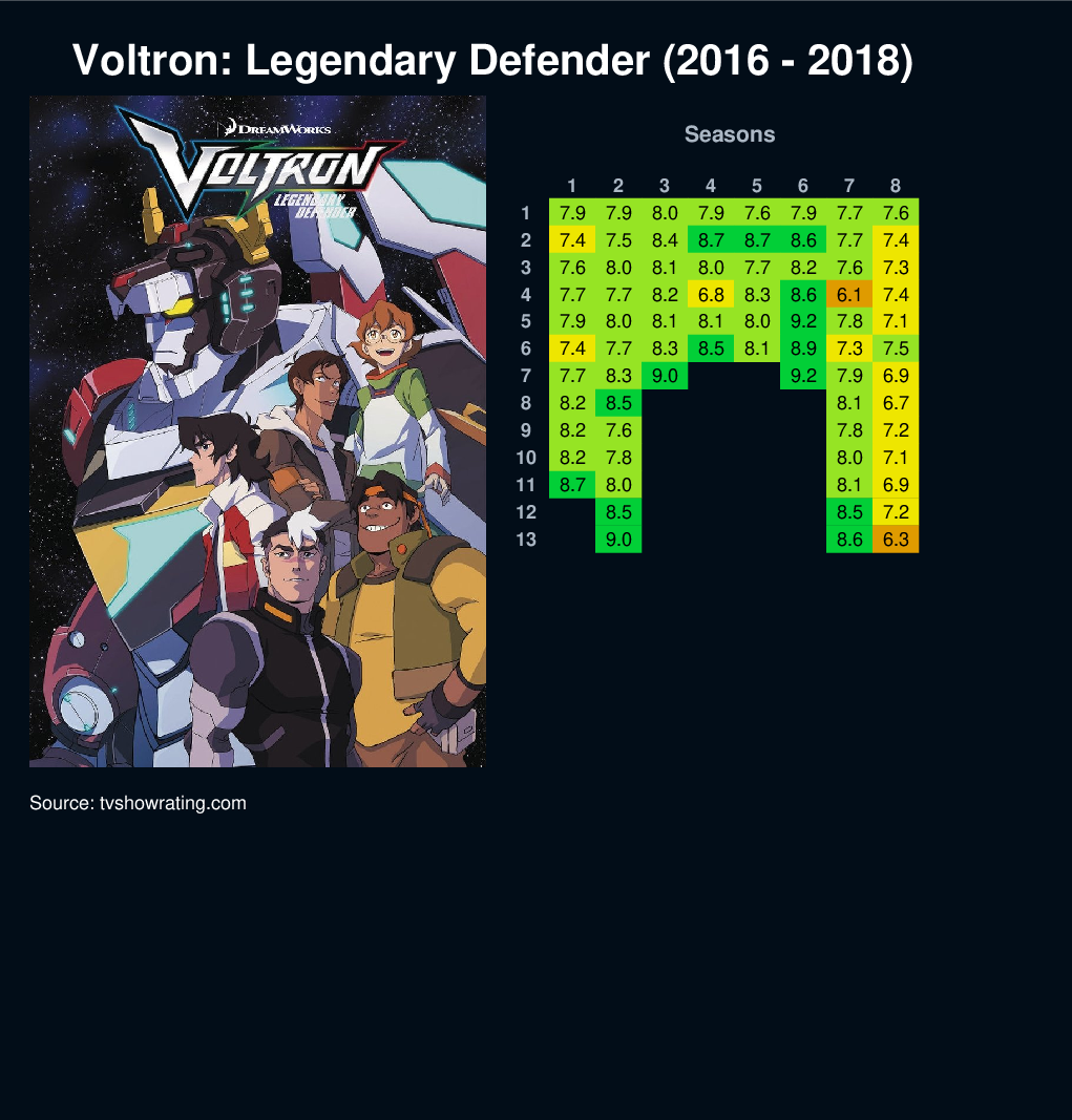 Five unlikely teenage heroes and their flying robot lions unite to form the megapowerful Voltron and defend the universe from evil.