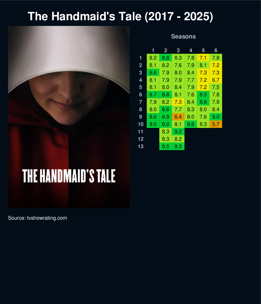 | 1 | 8.2 | 8.8 | 8.3 | 7.8 | 7.1 | 7.8 | |||||||||||||||||||||||||||||||||||||||||||
