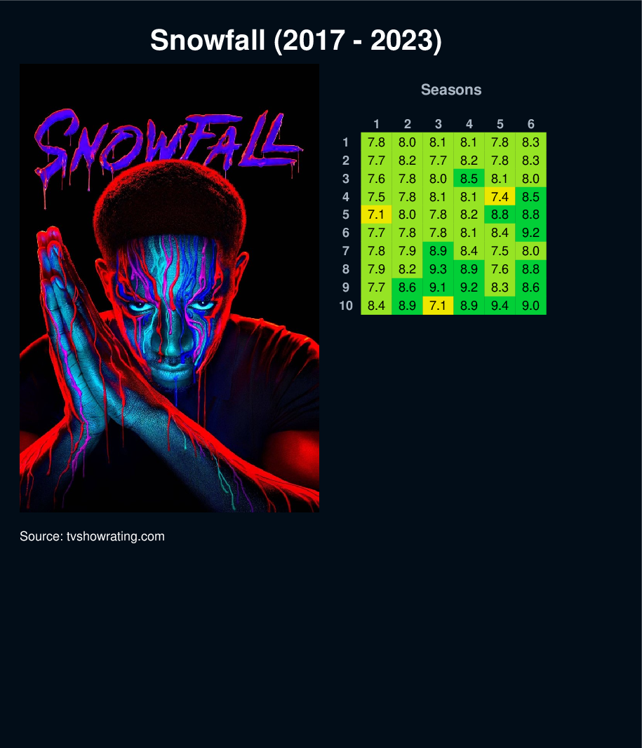 | 5 | 7.1 | 8.0 | 7.8 | 8.2 | 8.8 | 8.8 | |||||||||||||||||||||||||||||||||||||||||||