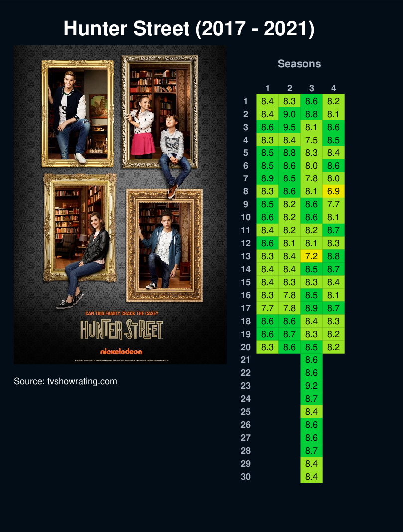 | 4 | 8.3 | 8.4 | 7.5 | 8.5 | |||||||||||||||||||||||||||||||||||||||||||||