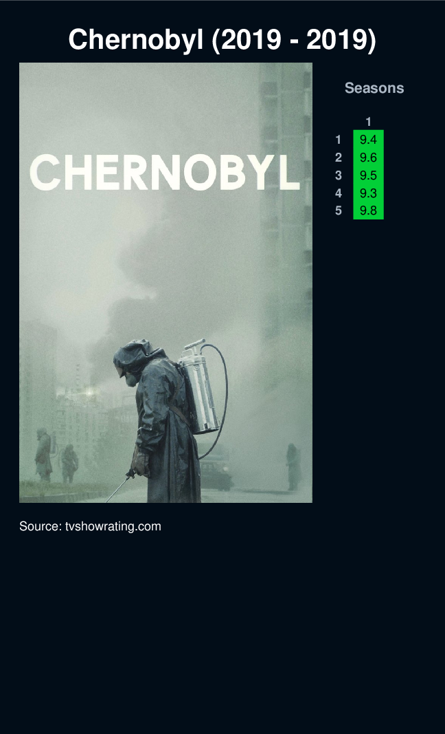 The true story of one of the worst man-made catastrophes in history: the catastrophic nuclear accident at Chernobyl. A tale of the brave men and women who sacrificed to save Europe from unimaginable disaster.
