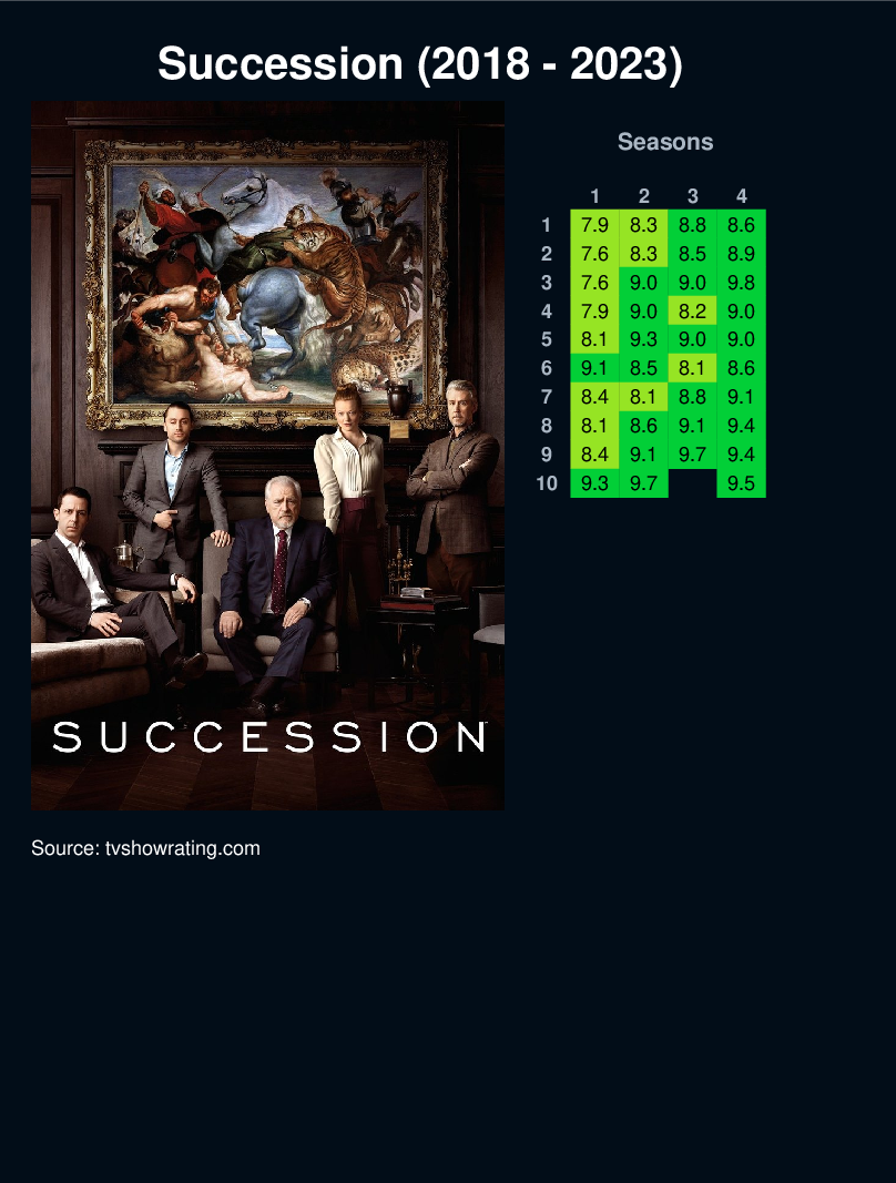 Follow the lives of the Roy family as they contemplate their future once their aging father begins to step back from the media and entertainment conglomerate they control.