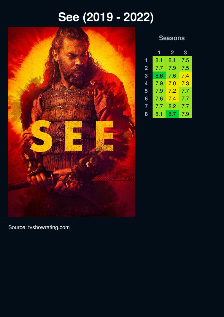 A virus has decimated humankind. Those who survived emerged blind. Centuries later when twins are born with the mythic ability to see, their father must protect his tribe against a threatened queen.